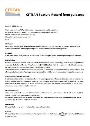 The CITIZAN feature recording form can be used for all other types of features from prehistoric barrows to Cold War remains. These forms provide prompts to make it easy for you to capture more detailed information.